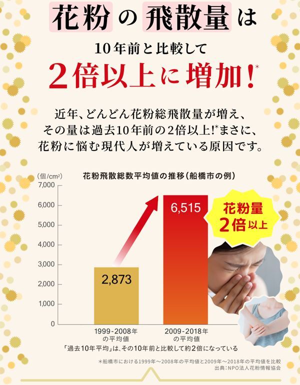 ※3 2023年4月に消費者庁が初めて、「花粉」、「免疫機能」の表記された届出文言を公表した機能性表示食品のひとつです。機能性の質に言及したものではありません。