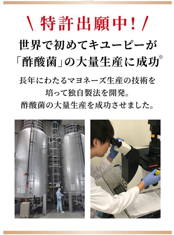 ※キユーピーグループ独自の製造技術により酢酸菌の大量生産を実現したこと