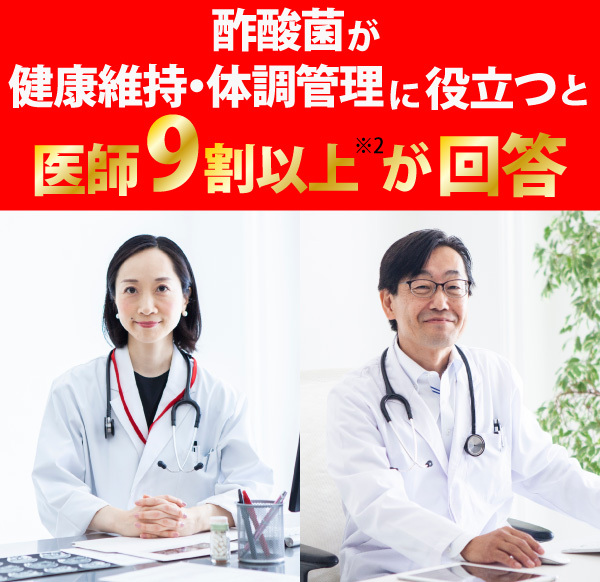 ※2.対象者:医師495名 調査委託先:株式会社マクロミル 調査方法、調査項目:回答者へ資料を提示した後、WEBアンケート調査を実施(2023年9月)/「キユーピーの酢酸菌は健康、健康維持に役立つと思いますか」「体調管理に役立つと思いますか」を勤続年数20年以上且つ週5勤務の良し127名に聴取/数値は4段階中「とても役立つと思う」「やや役立つと思う」と回答した医師の割合/回答内容はあくまで医師個人の印象であり、効果・効能を保証するものではありません。